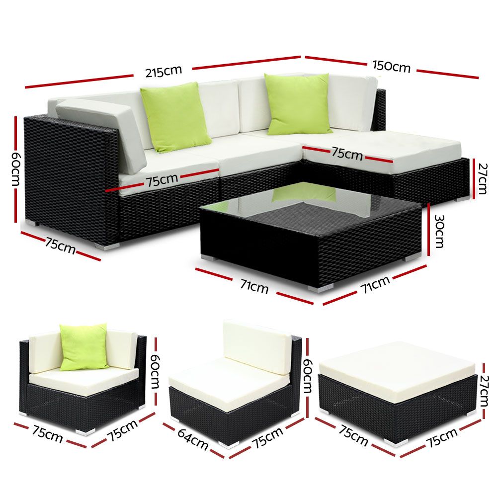 5 Piece Outdoor Furniture Set Wicker Sofa Lounge