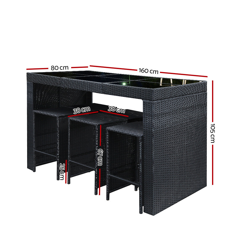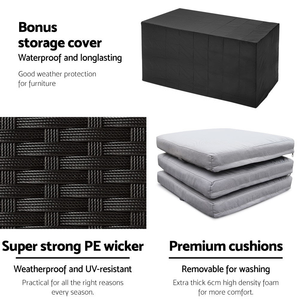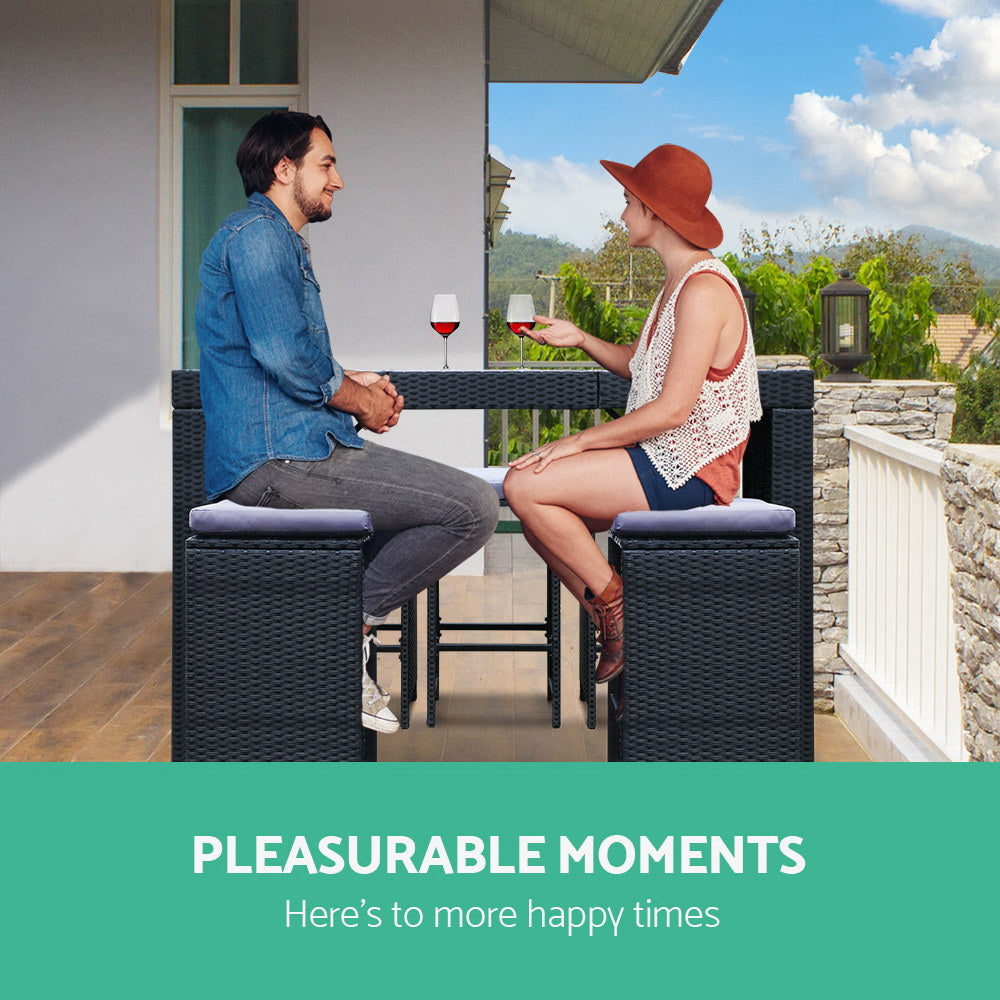 Made from PE wicker and power coated steel, the dining table set is designed to handle
