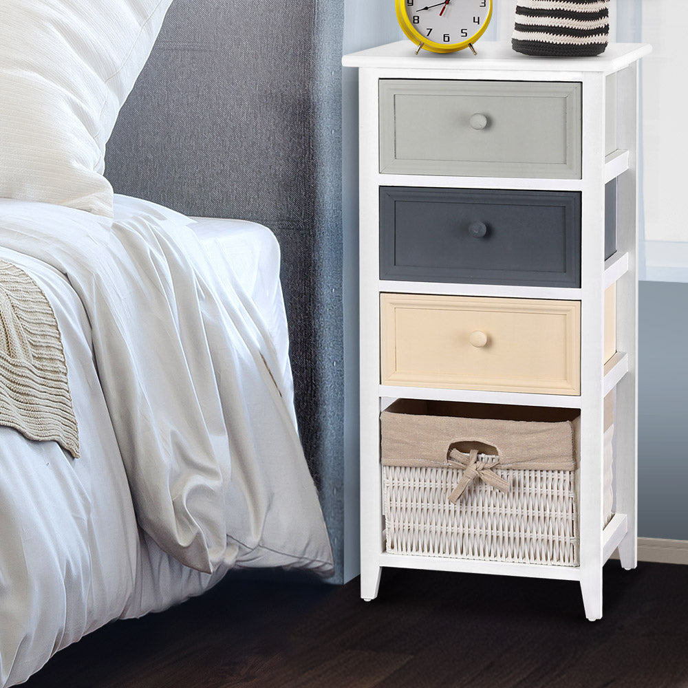 Add a touch of chic presence to your storage requirements with the storage dresser. Beautifully crafted in an endearing combination of Paulownia wood, MDF board and plywood and PP material, this dresser is simply charming in so many ways. The design is always appealing and its practicality is enhanced by the three deep drawers and one removable basket with an inner polyester cloth liner that is washable for easy maintenance. Use the cabinet in any room and it will match perfectly with the décor that you have with it neutral white tones. Not least, the anti-scratch feet pads will help to keep your floor in pristine condition. The cabinet comes fully assembled.