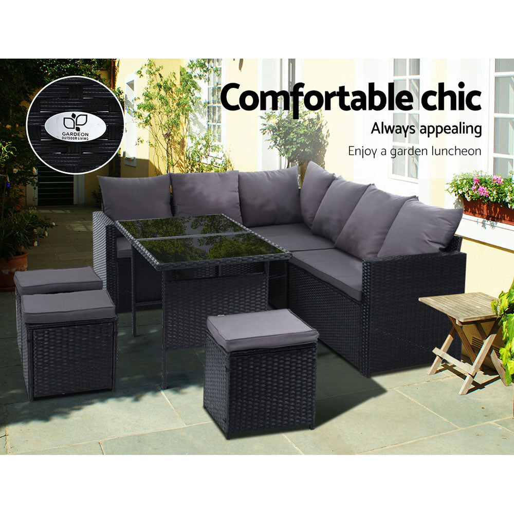 UNITE - Wicker Outdoor Setting - 9 seater - Black