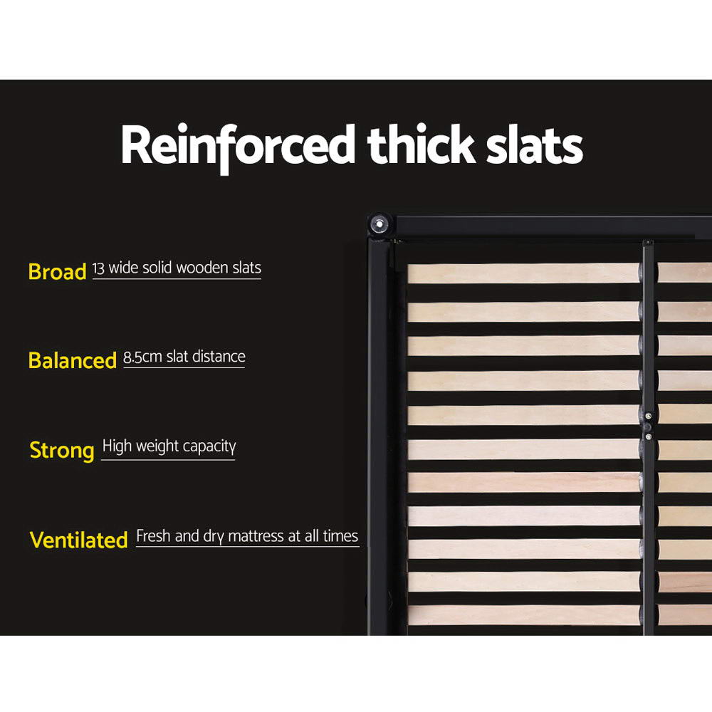 arched slat base the bed frame is covered with Fabric. With the easy gas lift