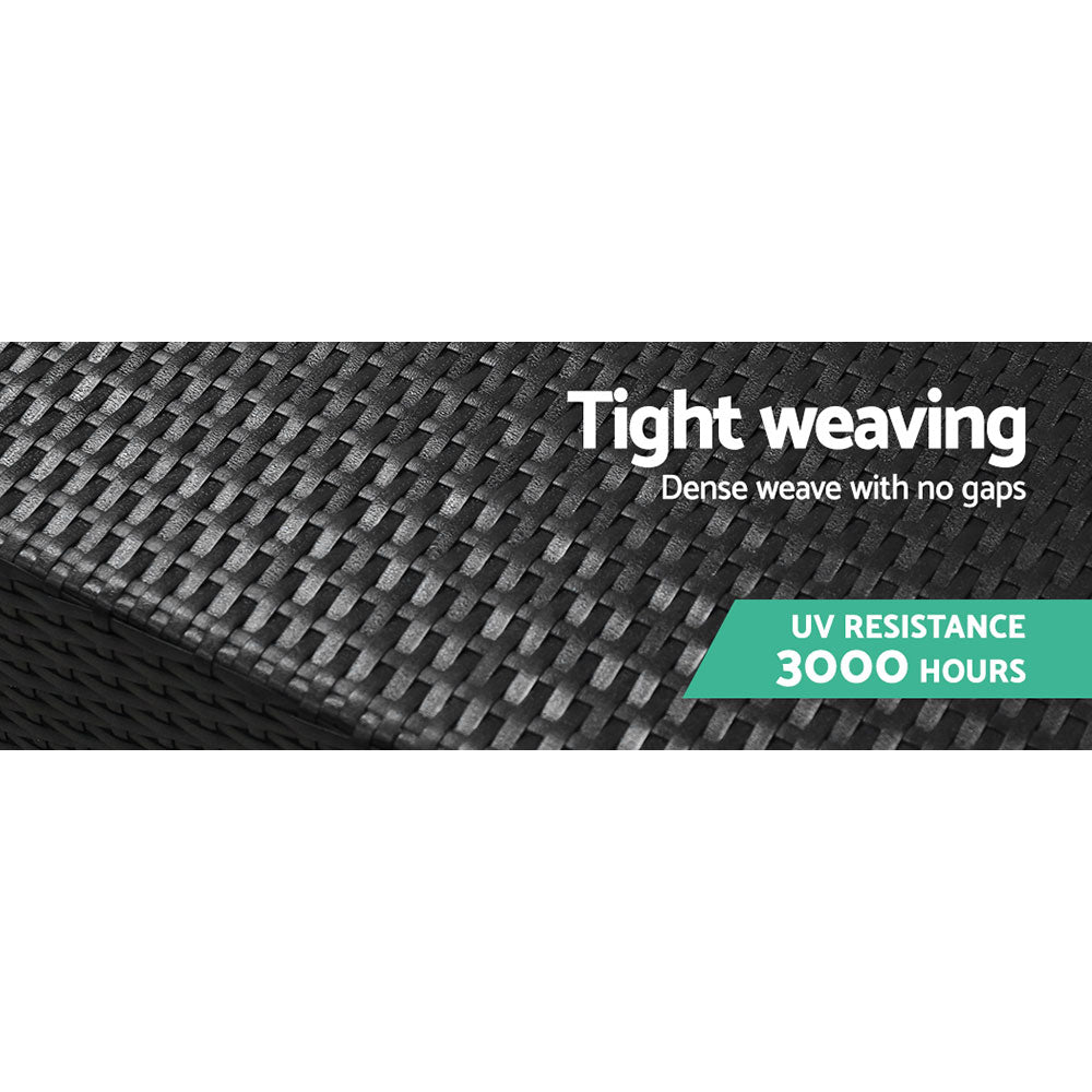 Enjoy the leisure outdoors with our Outdoor Sofa. Made from tight-weaved rattan and a sturdy aluminium frame, the sofa is strong and durable. The PE wicker is highly UV-resistant and perfect for use outdoors or indoors. For comfort, the seat cushion comprises 10cm thick high-density foam and covered with a waterproof and removable polyester cover. The covers are also machine washable for easy maintenance. The seat can take up to 150kg for longlasting robust use. Not least, the sofa also comes with feet stabilizers for stability and easy shifting when needed.