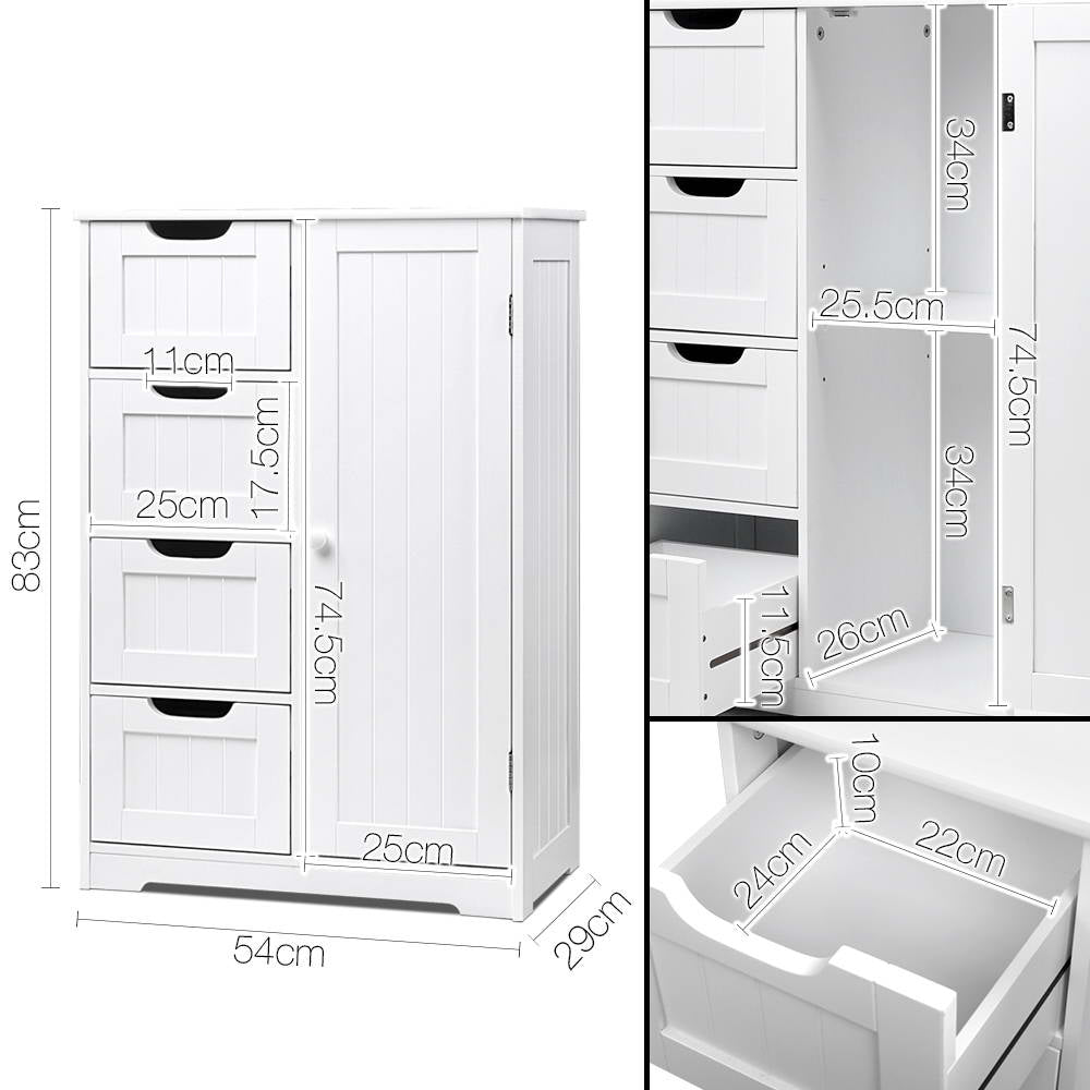 Featuring a MDF construction the storage cabinet comprises of four drawers and two