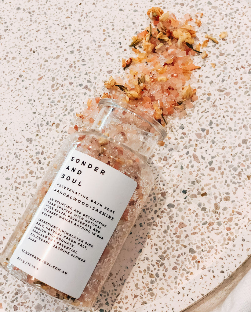 - Sonder & Soul - rejuvenating bath soak - Sandalwood & Jasmine 370g.