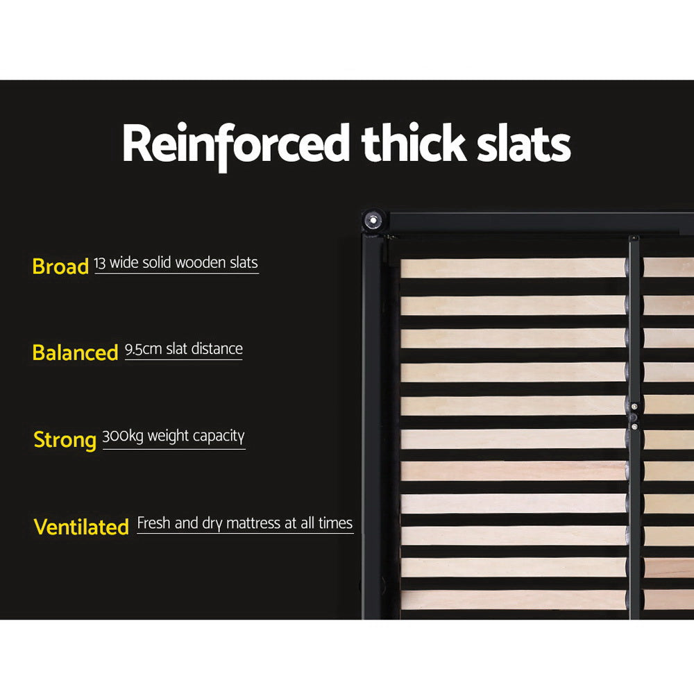 the bed frame is constructured with a sturdy steel frame using reinforced steel bars